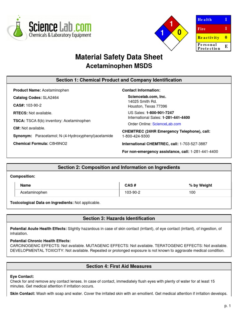 Acetaminophen (Paracetamol) Msds PDF PDF